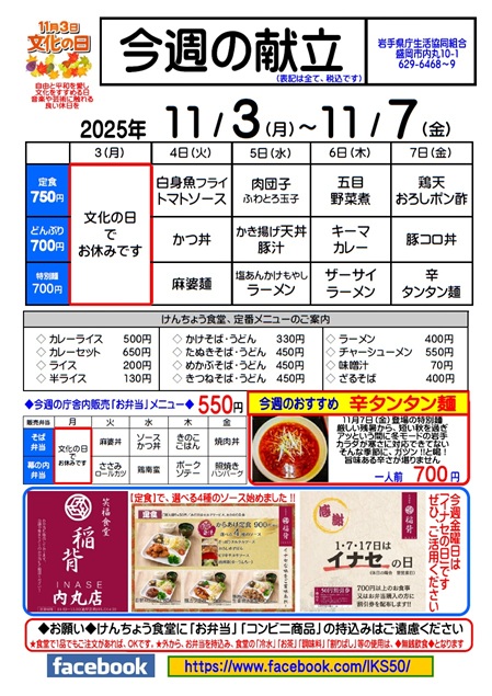 11月 3日(月)〜 11月 7日(金)